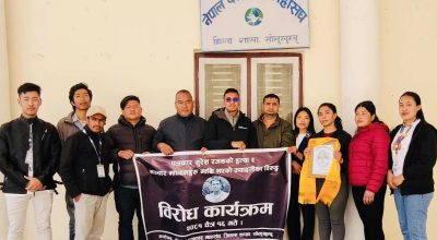 सोलुखुम्बु, चैत १६ । राजावादी समुहको आन्दोलनका क्रममा काठमाडौंको तीनकुने क्षेत्रमा पत्रकार सुरेश रजकको हत्याबिरुद्ध