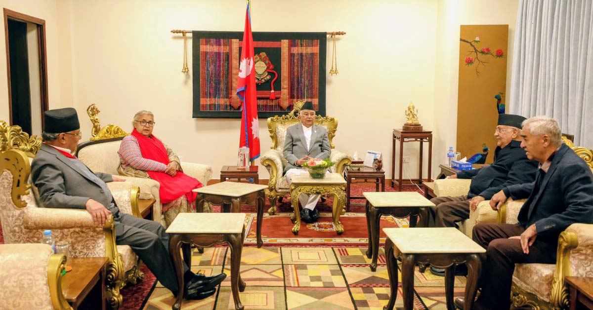 मंगलबार शीतल निवासमा प्रधानमन्त्री सुशीला कार्कीसहित नेपाली कांग्रेसका सभापति शेरबहादुर देउवा, नेकपा (एमाले)का अध्यक्ष केपी शर्मा ओली र नेपाली कम्युनिस्ट पार्टीका संयोजक पुष्पकमल दाहाल ‘प्रचण्ड’बीच भएको भेटवार्तामा यस्तो प्रयास गरिएको हो ।
