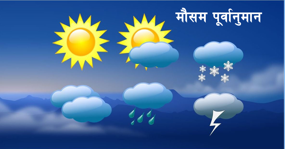महाशाखाका अनुसार आज दिउँसो कोशी र मधेस प्रदेशलगायत देशका पहाडी र हिमाली भूभागमा साधारणतया बादल लाग्नेछ भने तराई भूभागमा आंशिक बादल लाग्नेछ । कोशी प्रदेशलगायत देशका पहाडी र हिमाली भूभागका केही स्थान तथा बाँकी भूभागका थोरै स्थानमा मेघगर्जन र चटयाङ, हुरीबतास र असिना सहित मध्यम वर्षा र हिमपातको सम्भावना छ ।