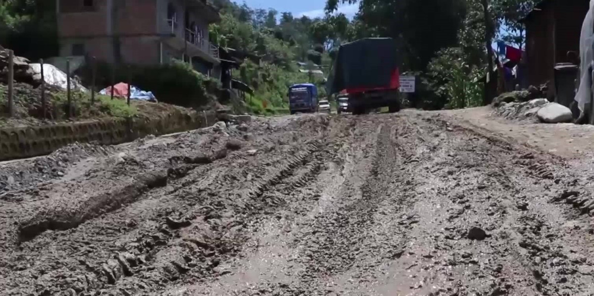 बेमौसमी वर्षा : दाउन्नेमा सडक अवरुद्ध