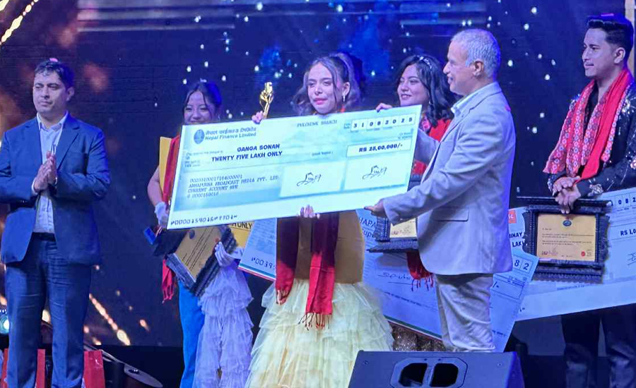 काठमाडौं । गायन रियालिटी शो ‘नेपाल आइडल’ सिजन–६ को उपाधि सिन्धुपाल्चोककी गंगा सोनामले जितेकी छन्। आइतबार राति सम्पन्न ग्राण्ड फिनालेमा चार प्रतिस्पर्धीलाई पछि पार्दै उनले विजेता बनेकी हुन्। दर्शकको भोटका आधारमा विजेता घोषणा गरिएको हो।