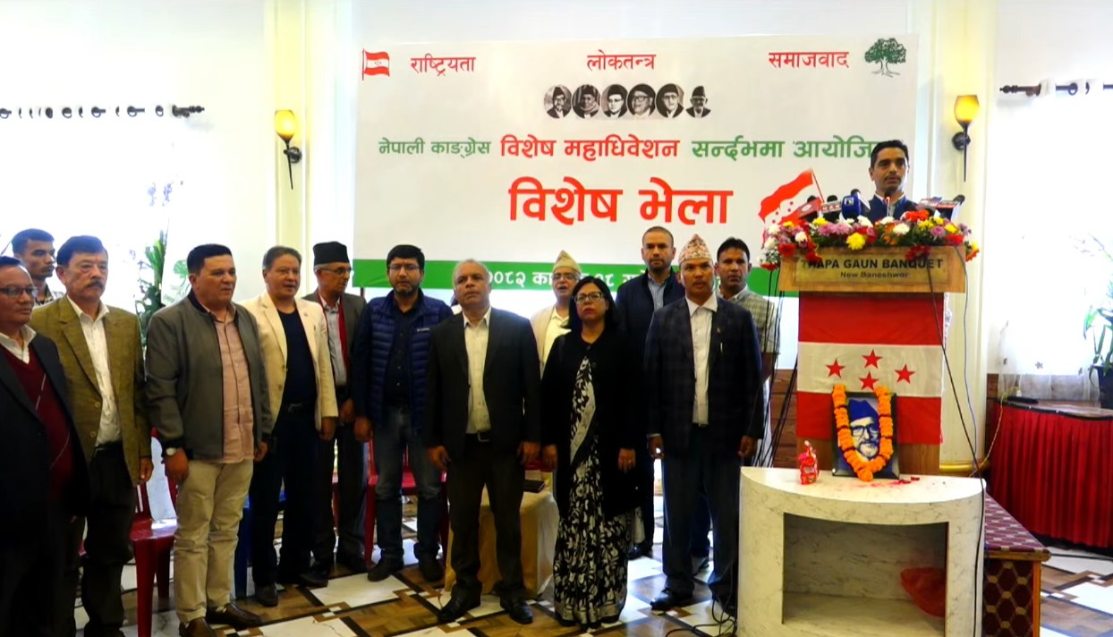 काठमाडौं । नेपाली कांग्रेसको विशेष महाधिवेशनको पक्षमा रहेका नेताहरूको भेला थापागाँउस्थित थापागाँउ व्याङ्क्वेटमा सुरु भएको छ। भेलामा महामन्त्री गगन थापा निकट केन्द्रीय सदस्यहरू समेत सहभागी भएका छन्।