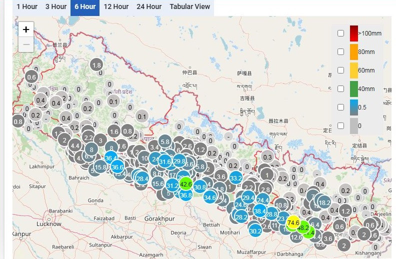 यस्तै रौतहट, मकवानपुर, बारा, पाल्पा, गुल्मी, बागलुङ, दाङलगायतका जिल्लामा पनि पानी परेको छ । आजराती बागमती, गण्डकी र लुम्बिनी प्रदेशका केही ठाउँमा ठूलो पानी पर्ने सम्भावना रहेको मौसमविद् महर्जनले जानकारी दिनुभयो । मौसमी सूचनाको सही जानकारी लिएर मात्रै यात्रा गर्न र आवश्यक सावधानी अपनाउन महाशाखाले अनुरोध छ ।