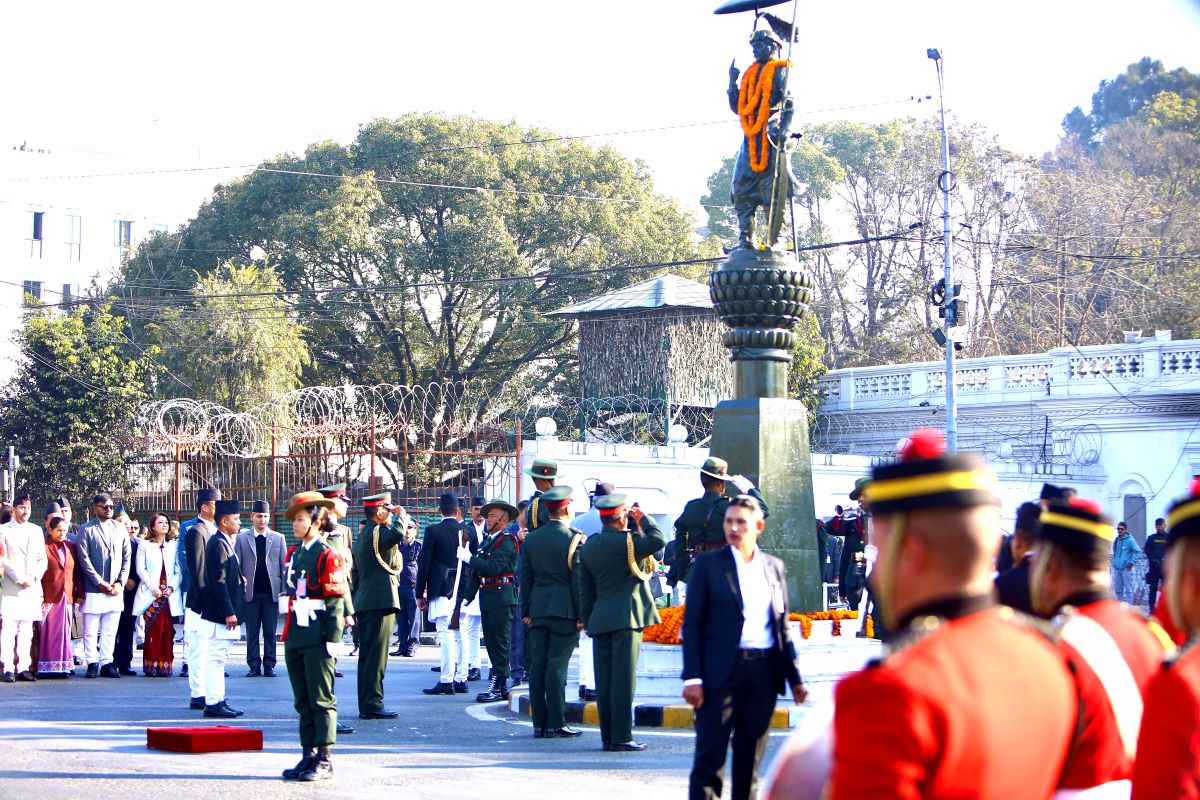 काठमाडौँ । नेपाली सेनाले राष्ट्रनिर्माता पृथ्वीनारायण शाहको सालिकमा माल्यापर्ण गर्दै उनीप्रति सम्मान प्रकट गरेको छ।