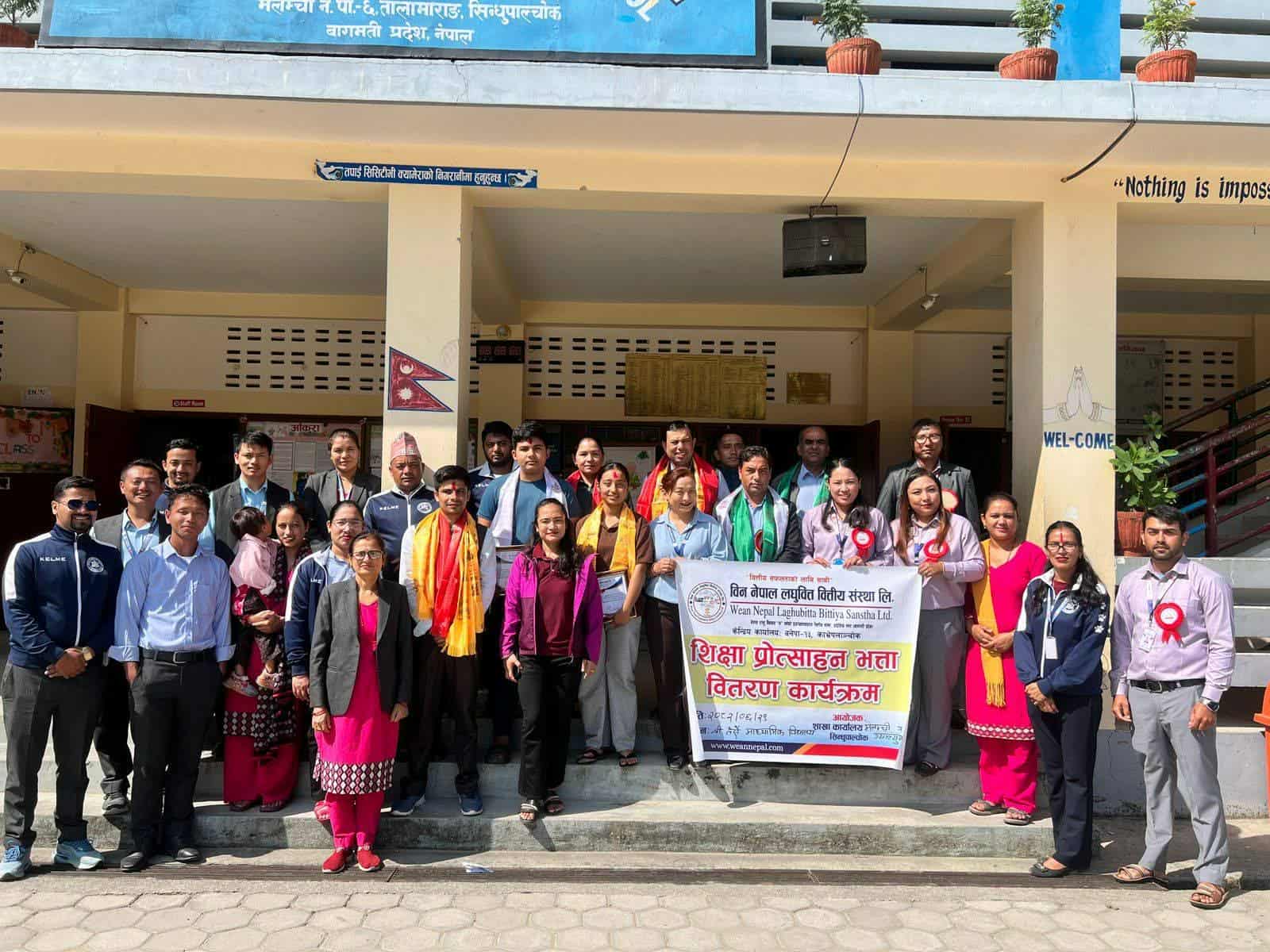 विन नेपाल लघुवित्त वित्तीय संस्था लि मेलम्ची र ग्याल्थुम शाखाले शिक्षा प्रोत्साहन कार्यक्रम अनुसार दुवै शाखा अन्तर्गतका बचतकर्ता सदस्य परिवार मध्ये २०८१ को एसइइ परीक्षामा उत्कृष्ट विद्यार्थीहरुका लागि प्रोत्साहन भत्ता वितरण कार्यक्रम बुधबार तेर्से मा वि तालामाराङमा सम्पन्न गरेको छ ।