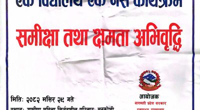 त्यस्तै आज मंसिर २९ गते (सोमबार) जनस्वास्थ्य कार्यालय सिन्धुपाल्चोकको आयोजनामा बागमती प्रदेश सरकारको गौरवको कार्यक्रम ‘एक विद्यालय एक नर्स’ कार्यक्रमको वार्षिक समिक्षा तथा क्षमता अभिवृद्धि कार्यक्रम सम्पन्न भएको छ। सुनकोशी गाउँपालिका–स्थित ग्रामीण महिला सिर्जनशील परिवारको सभा हलमा भएको कार्यक्रममा जिल्लाका १२ वटै स्थानीय तहका ४५ जना विद्यालय नर्सको सहभागिता रहेको थियो।